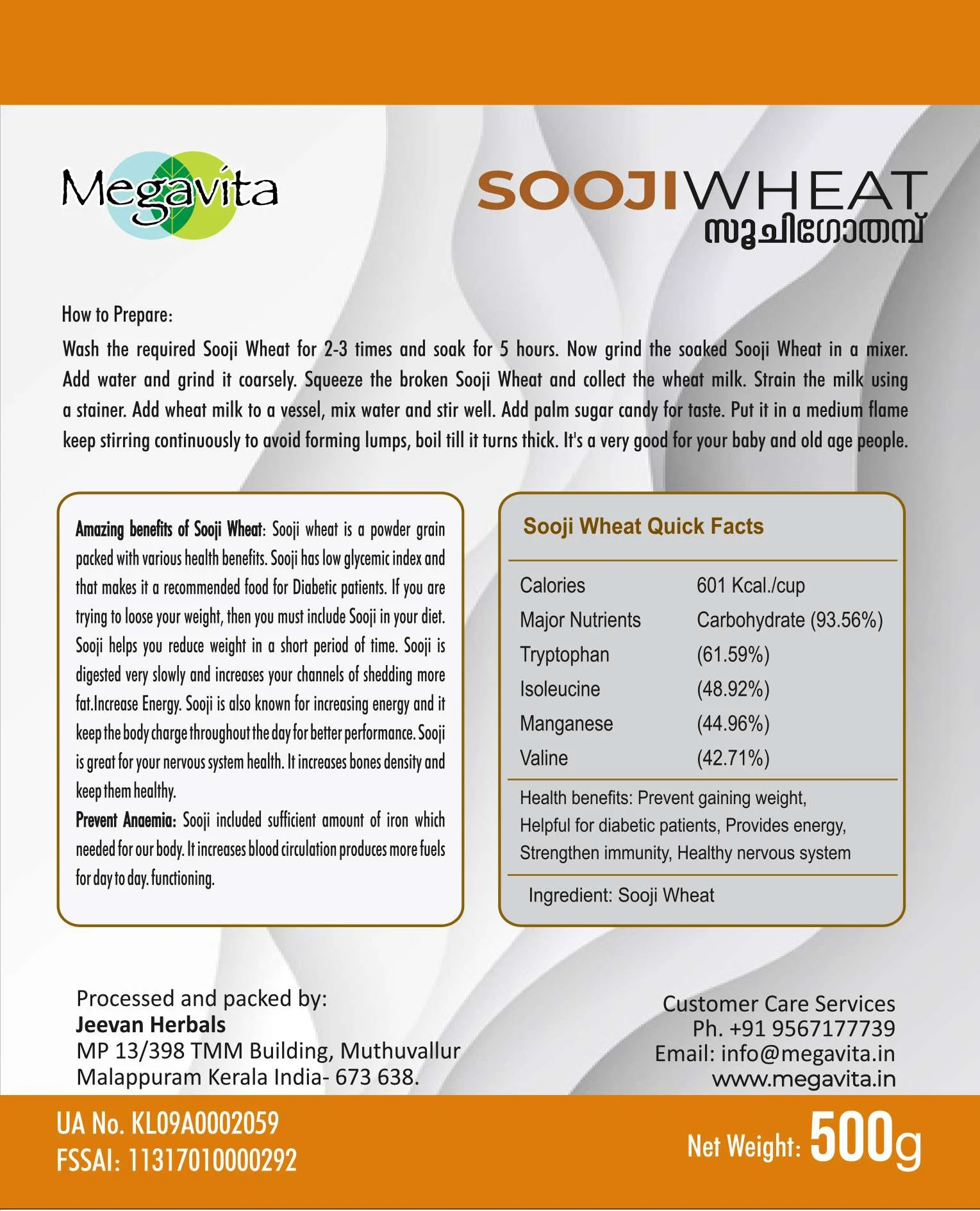 Megavita SOOJI WHEAT is a nutritious grain that contains more protein. It is very beneficial for the healthy growth of children. Sooji wheat, which contains more fiber, is a good grain to make a variety of tasty dishes. It contains only a small amount of starch. It also has the ability to reduce fluctuations in blood sugar levels, making it beneficial for diabetics. Therefore, it is an excellent food for diabetics.